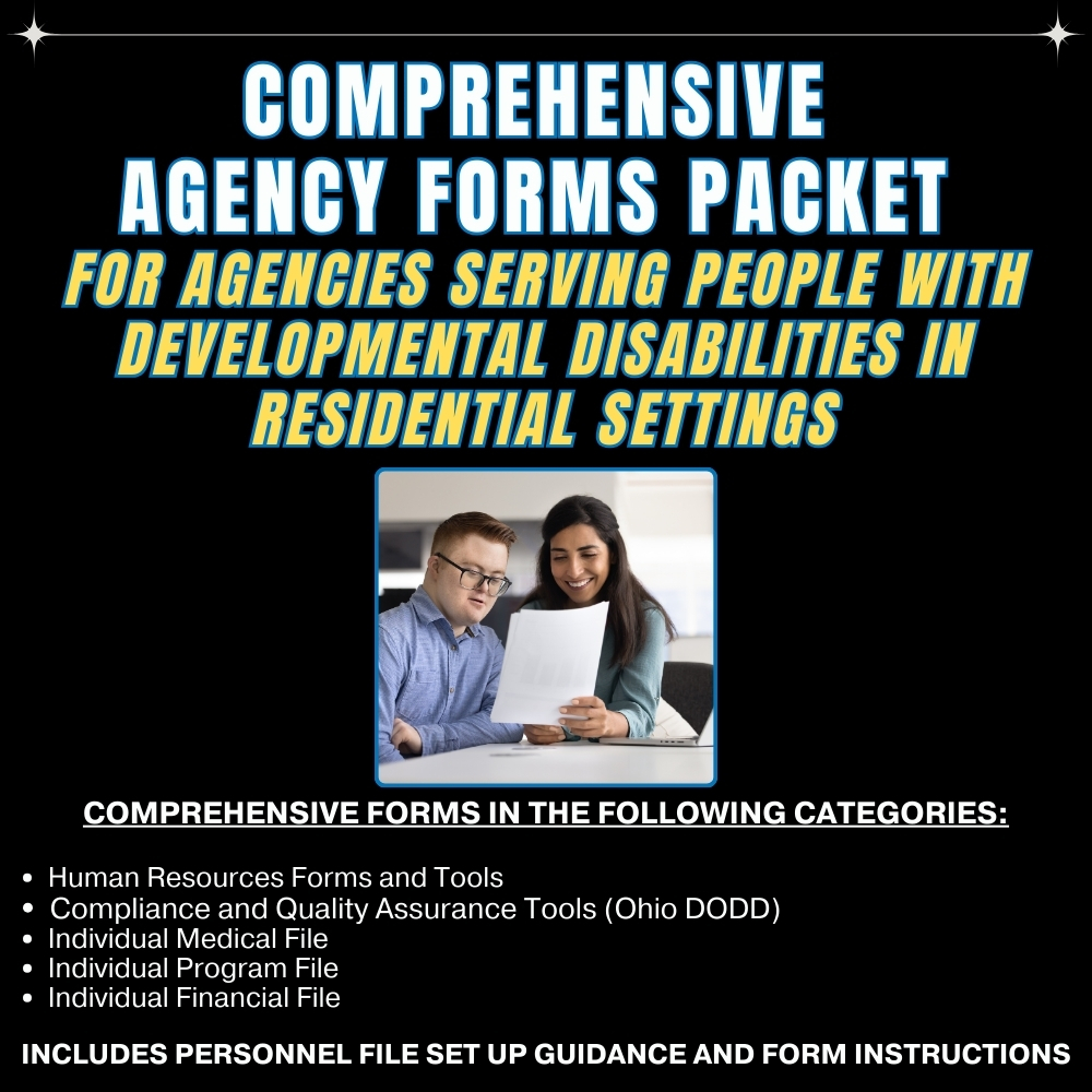 This comprehensive forms packet gives provider agencies a complete, organized system for managing individual, employee, and agency-level documentation—all in one place. Designed specifically for Ohio developmental-disabilities and HCBS providers, these tools support daily operations, strengthen compliance, and make audits far less stressful.