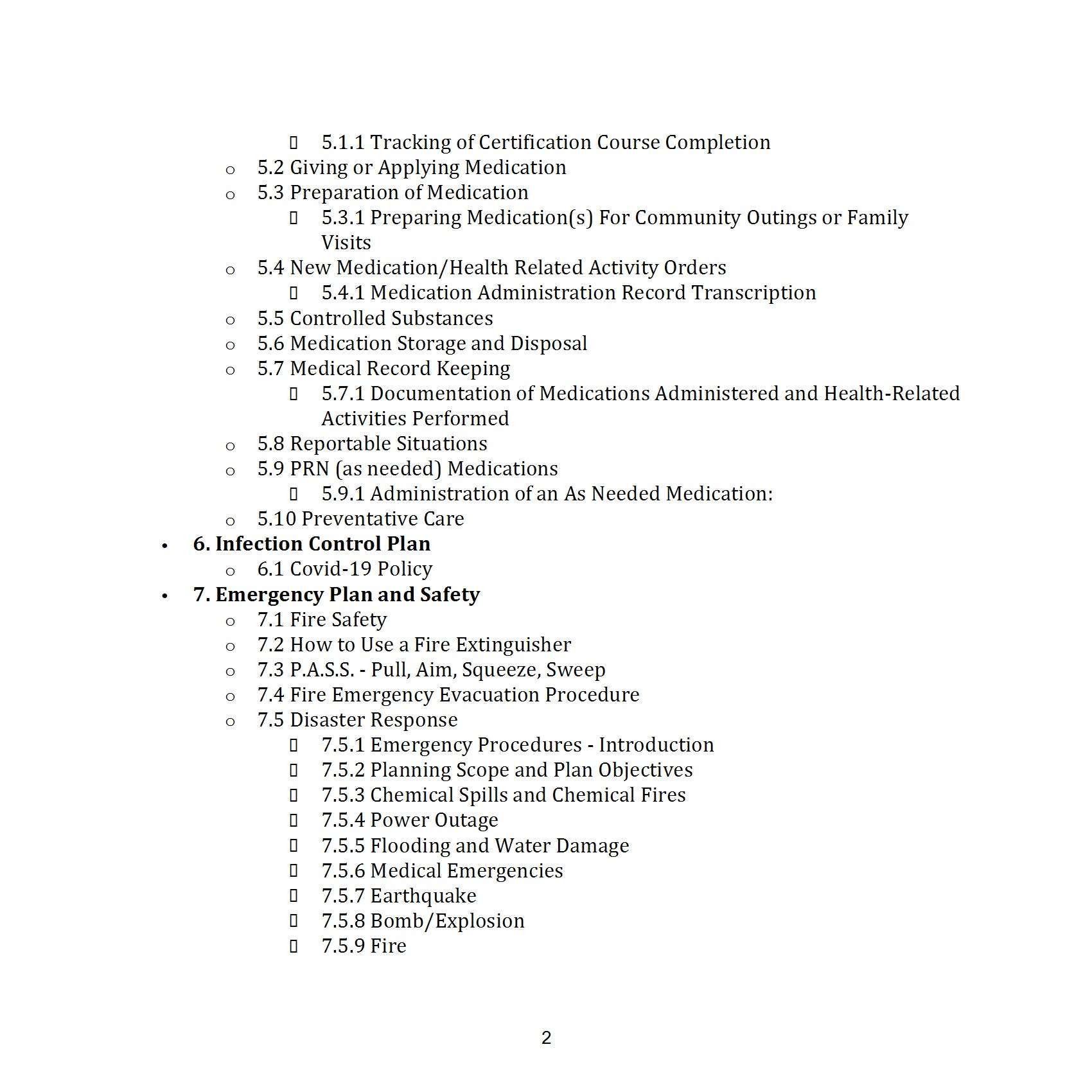 - Health and Safety Protocols: The manual outlines procedures for medication administration, infection control, and emergency planning, including fire safety and disaster response.