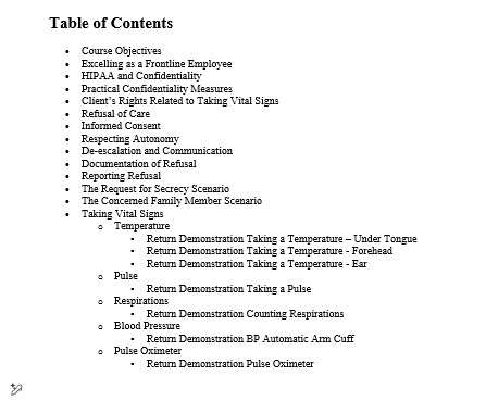 Equip your frontline employees with the critical skills and judgment needed to provide superior care with our comprehensive Taking Vital Signs curriculum. This course—part of the Frontline Employee Development Series—ensures your staff is technically proficient while also mastering communication, autonomy, and confidentiality.