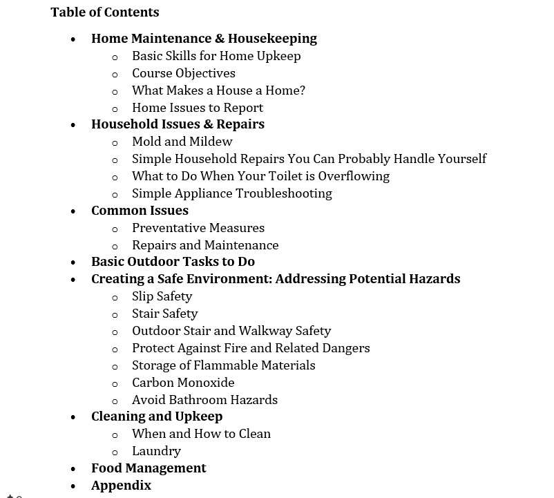 Equip your staff with the essential skills to keep homes safe, comfortable, and well-maintained. This Take and Teach Curriculum is a complete, ready-to-use training package designed for frontline employees who support individuals in residential settings. It eliminates the need to develop materials from scratch while ensuring professional, consistent training delivery.